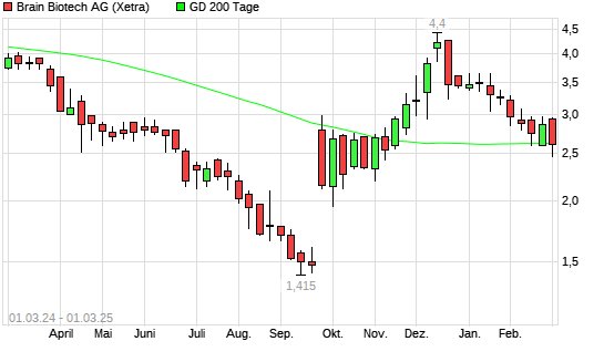 Mit dem Rücksetzer auf 2,53 EUR hat die BRAIN Biotech AG-Aktie am 28.02.2025 die 200-Tage-Linie nach unten gekreuzt.
