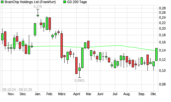 Mit dem Anstieg auf 0,14 EUR hat die BRAINCHIP HOLDINGS-Aktie am 08.10.2025 die 200-Tage-Linie nach oben gekreuzt.