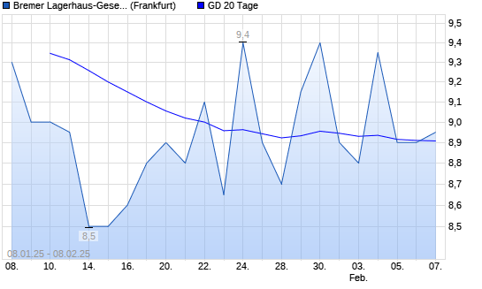 Mit dem Anstieg auf 8,95 EUR hat die BREMER LAGERH.N.AKT.O.N.-Aktie am 07.02.2025 die 20-Tage-Linie nach oben gekreuzt.