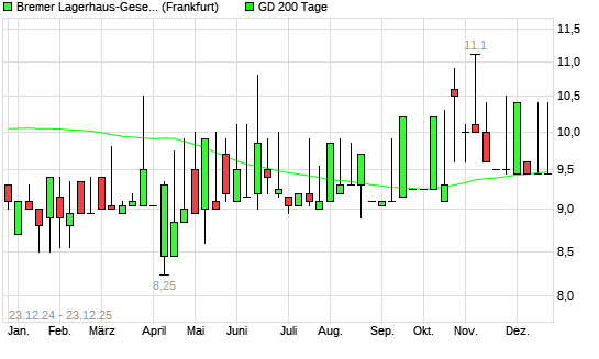 Mit dem Anstieg auf 10,40 EUR hat die BREMER LAGERH.N.AKT.O.N.-Aktie am 22.12.2025 die 200-Tage-Linie nach oben gekreuzt.