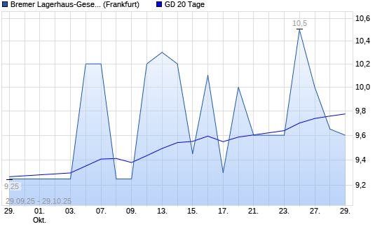 Mit dem Rücksetzer auf 9,65 EUR hat die BREMER LAGERH.N.AKT.O.N.-Aktie am 28.10.2025 die 20-Tage-Linie nach unten gekreuzt.
