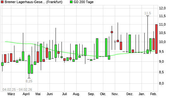 Mit dem Rücksetzer auf 9,40 EUR hat die BREMER LAGERH.N.AKT.O.N.-Aktie am 03.02.2026 die 200-Tage-Linie nach unten gekreuzt.