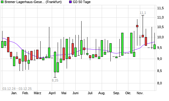 Mit dem Rücksetzer auf 9,65 EUR hat die BREMER LAGERH.N.AKT.O.N.-Aktie am 02.12.2025 die 50-Tage-Linie nach unten gekreuzt.
