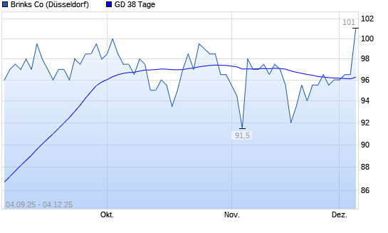 Mit dem Anstieg auf 96,00 EUR hat die BRINKS CO-Aktie am 03.12.2025 die 38-Tage-Linie nach oben gekreuzt.