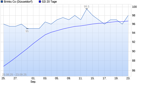 Mit dem Rücksetzer auf 95,50 EUR hat die BRINKS CO-Aktie am 22.09.2025 die 20-Tage-Linie nach unten gekreuzt.