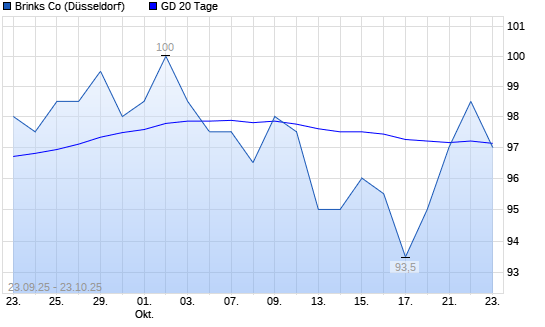 Mit dem Anstieg auf 98,00 EUR hat die BRINKS CO-Aktie am 22.10.2025 die 20-Tage-Linie nach oben gekreuzt.Die BRINKS CO-Aktie befindet sich seit dem 07.08.2025 im langfristigen Aufwärtstrend ...weiterlesen