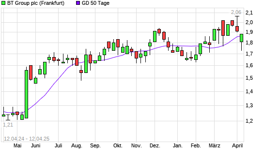 Mit dem Anstieg auf 1,88 EUR hat die BT Group-Aktie am 11.04.2025 die 50-Tage-Linie nach oben gekreuzt.