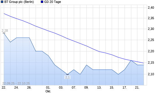 Mit dem Rücksetzer auf 2,14 EUR hat die BT Group-Aktie am 21.10.2025 die 20-Tage-Linie nach unten gekreuzt.