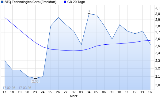 Mit dem Rücksetzer auf 2,52 EUR hat die BTQ Technologies-Aktie am 16.03.2026 die 20-Tage-Linie nach unten gekreuzt.