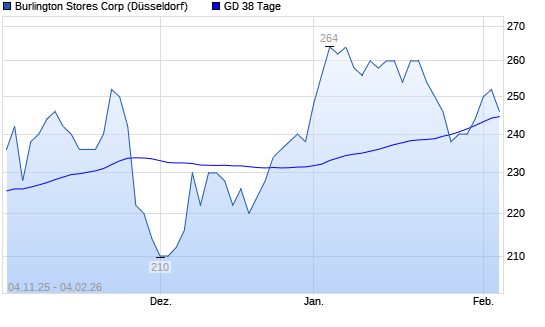 Mit dem Anstieg auf 250,00 EUR hat die BURLINGTON STORES-Aktie am 03.02.2026 die 38-Tage-Linie nach oben gekreuzt.