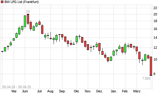 Mit dem Rücksetzer auf 7,85 EUR hat die BW LPG-Aktie (ISIN SGXZ69436764) am 04.04.2025 ein neues 12-Monats-Tief erreicht und damit den Kurs vom 11.03.2025 eingestellt.