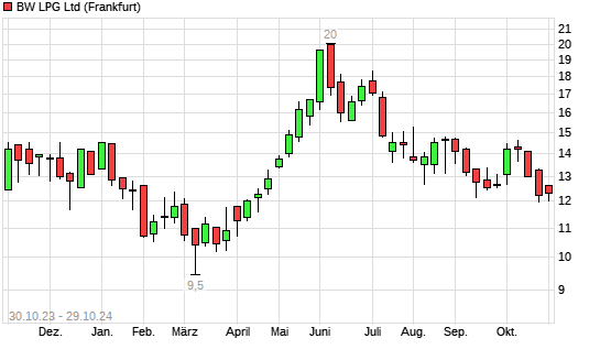 Mit dem Rücksetzer auf 12,05 EUR hat die BW LPG-Aktie (ISIN SGXZ69436764) am 28.10.2024 ein neues 6-Monats-Tief erreicht und damit den Kurs vom 24.10.2024 eingestellt.
