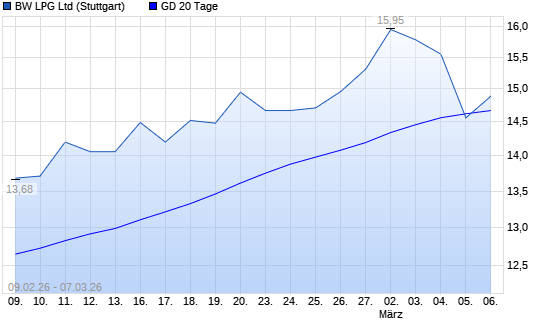 Mit dem Anstieg auf 14,70 EUR hat die BW LPG-Aktie am 06.03.2026 die 20-Tage-Linie nach oben gekreuzt.