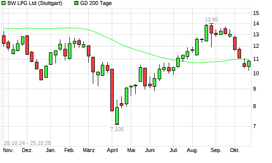 Mit dem Anstieg auf 11,06 EUR hat die BW LPG-Aktie am 24.10.2025 die 200-Tage-Linie nach oben gekreuzt.