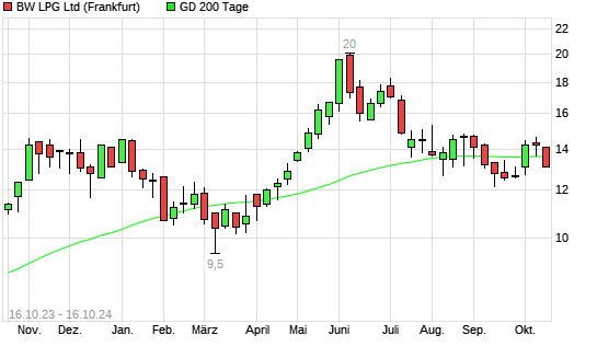 Mit dem Rücksetzer auf 13,11 EUR hat die BW LPG-Aktie am 15.10.2024 die 200-Tage-Linie nach unten gekreuzt.