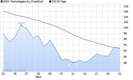 Mit dem Anstieg auf 93,16 EUR hat die BWX Technologies-Aktie am 20.03.2025 die 20-Tage-Linie nach oben gekreuzt.