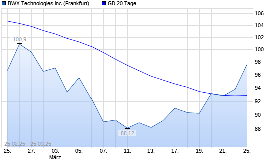 Mit dem Anstieg auf 93,80 EUR hat die BWX Technologies-Aktie am 24.03.2025 die 20-Tage-Linie nach oben gekreuzt.