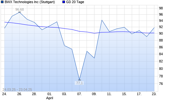 Mit dem Rücksetzer auf 87,40 EUR hat die BWX Technologies-Aktie am 22.04.2025 die 20-Tage-Linie nach unten gekreuzt.