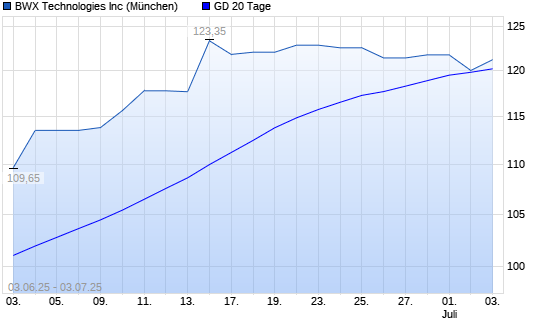 Mit dem Rücksetzer auf 117,45 EUR hat die BWX Technologies-Aktie am 02.07.2025 die 20-Tage-Linie nach unten gekreuzt.
