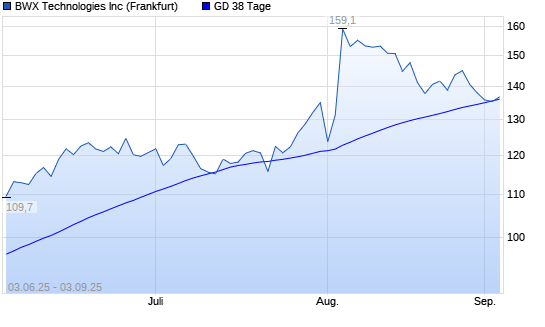 Mit dem Rücksetzer auf 135,40 EUR hat die BWX Technologies-Aktie am 02.09.2025 die 38-Tage-Linie nach unten gekreuzt.