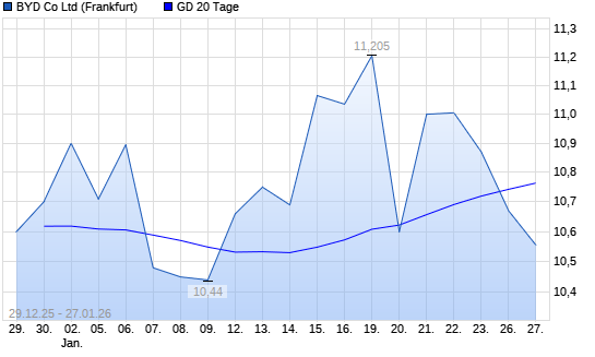Mit dem Rücksetzer auf 10,67 EUR hat die BYD-Aktie am 26.01.2026 die 20-Tage-Linie nach unten gekreuzt.