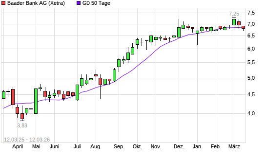 Mit dem Rücksetzer auf 6,75 EUR hat die Baader Bank-Aktie am 11.03.2026 die 50-Tage-Linie nach unten gekreuzt.