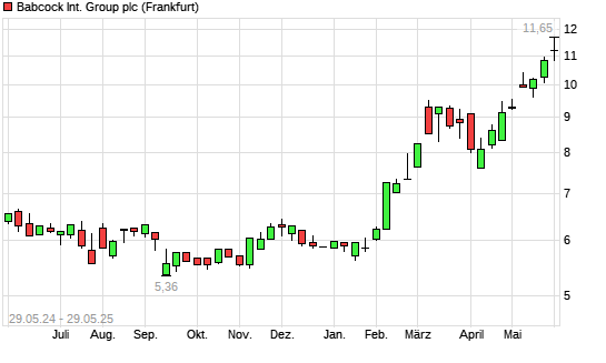 Mit dem Anstieg auf 11,39 EUR hat die Babcock International Group-Aktie (ISIN GB0009697037) am 28.05.2025 ein neues 5-Jahres-Hoch erreicht und damit den Kurs vom 26.05.2025 eingestellt.