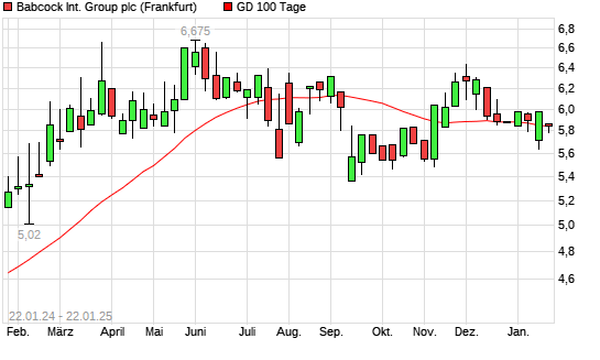 Mit dem Rücksetzer auf 5,78 EUR hat die Babcock International Group-Aktie am 21.01.2025 die 100-Tage-Linie nach unten gekreuzt.