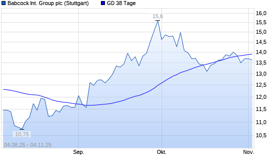 Mit dem Rücksetzer auf 13,74 EUR hat die Babcock International Group-Aktie am 03.11.2025 die 38-Tage-Linie nach unten gekreuzt.