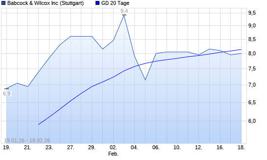 Mit dem Rücksetzer auf 7,70 EUR hat die Babcock & Wilcox-Aktie am 17.02.2026 die 20-Tage-Linie nach unten gekreuzt.