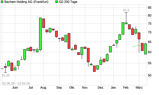 Mit dem Anstieg auf 64,55 EUR hat die Bachem Holding-Aktie am 12.03.2026 die 200-Tage-Linie nach oben gekreuzt.