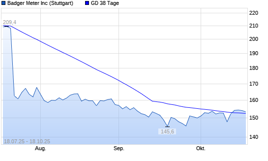 Mit dem Anstieg auf 152,80 EUR hat die Badger Meter-Aktie am 17.10.2025 die 38-Tage-Linie nach oben gekreuzt.