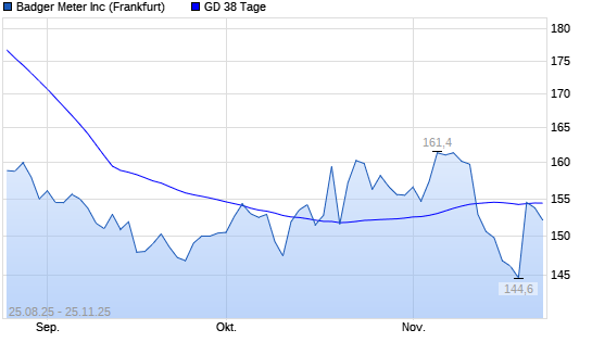 Mit dem Rücksetzer auf 153,80 EUR hat die Badger Meter-Aktie am 24.11.2025 die 38-Tage-Linie nach unten gekreuzt.