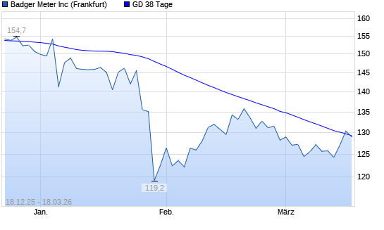 Mit dem Rücksetzer auf 129,10 EUR hat die Badger Meter-Aktie am 17.03.2026 die 38-Tage-Linie nach unten gekreuzt.