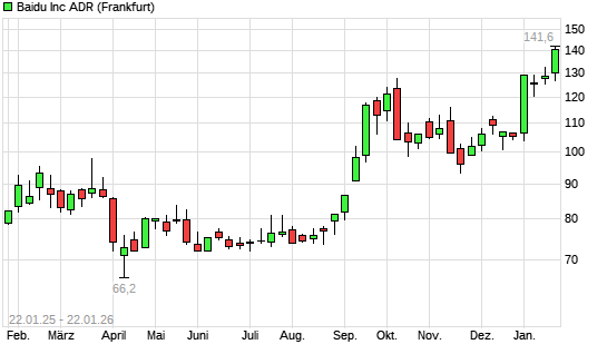 Mit dem Anstieg auf 139,00 EUR hat die Baidu-Aktie (ISIN US0567521085) am 21.01.2026 ein neues 12-Monats-Hoch erreicht und damit den Kurs vom 12.01.2026 eingestellt.Die ...weiterlesen