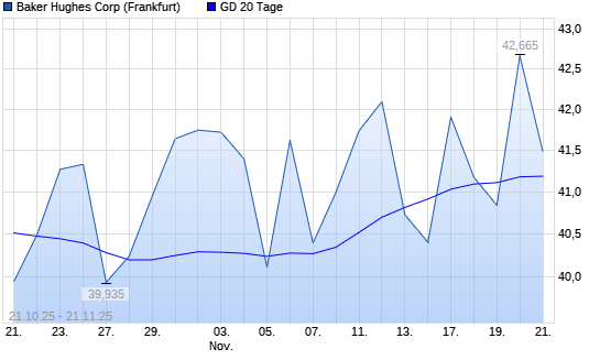 Mit dem Anstieg auf 42,66 EUR hat die Baker Hughes-Aktie am 20.11.2025 die 20-Tage-Linie nach oben gekreuzt.