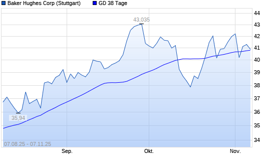 Mit dem Anstieg auf 41,63 EUR hat die Baker Hughes-Aktie am 06.11.2025 die 38-Tage-Linie nach oben gekreuzt.