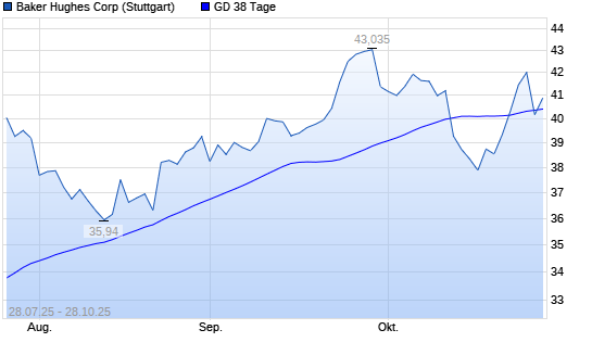 Mit dem Rücksetzer auf 39,93 EUR hat die Baker Hughes-Aktie am 27.10.2025 die 38-Tage-Linie nach unten gekreuzt.