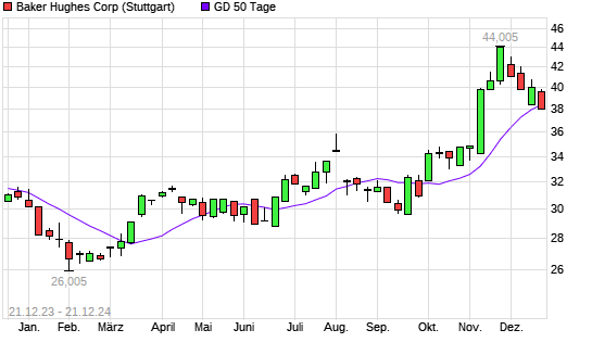 Mit dem Rücksetzer auf 38,04 EUR hat die Baker Hughes-Aktie am 20.12.2024 die 50-Tage-Linie nach unten gekreuzt.