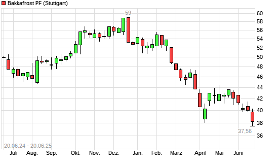 Mit dem Rücksetzer auf 38,00 EUR hat die Bakkafrost-Aktie (ISIN FO0000000179) am 19.06.2025 ein neues 5-Jahres-Tief erreicht und damit den Kurs vom 18.06.2025 eingestellt.