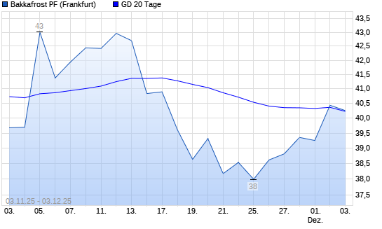 Mit dem Anstieg auf 40,44 EUR hat die Bakkafrost-Aktie am 02.12.2025 die 20-Tage-Linie nach oben gekreuzt.