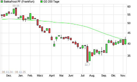 Mit dem Anstieg auf 41,94 EUR hat die Bakkafrost-Aktie am 07.11.2025 die 200-Tage-Linie nach oben gekreuzt.