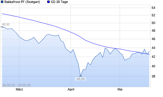 Mit dem Anstieg auf 43,02 EUR hat die Bakkafrost-Aktie am 19.05.2025 die 38-Tage-Linie nach oben gekreuzt.