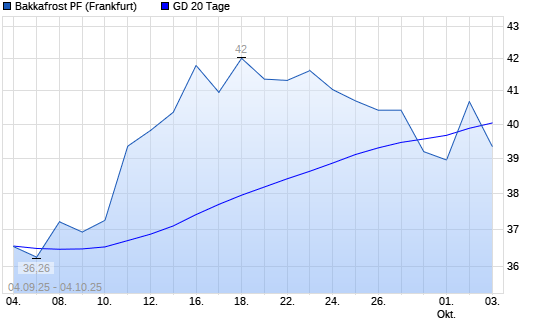 Mit dem Rücksetzer auf 39,36 EUR hat die Bakkafrost-Aktie am 03.10.2025 die 20-Tage-Linie nach unten gekreuzt.