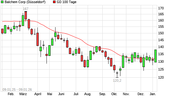 Mit dem Anstieg auf 130,80 EUR hat die Balchem-Aktie am 08.01.2026 die 100-Tage-Linie nach oben gekreuzt.