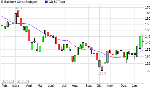 Mit dem Anstieg auf 130,80 EUR hat die Balchem-Aktie am 22.01.2026 die 50-Tage-Linie nach oben gekreuzt.