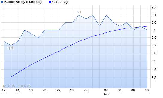 Mit dem Anstieg auf 5,95 EUR hat die Balfour Beatty-Aktie am 09.06.2025 die 20-Tage-Linie nach oben gekreuzt.