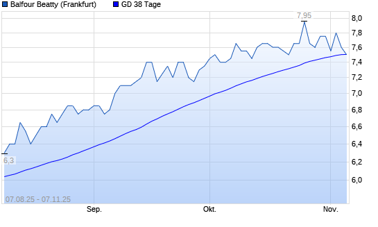 Mit dem Rücksetzer auf 7,50 EUR hat die Balfour Beatty-Aktie am 06.11.2025 die 38-Tage-Linie nach unten gekreuzt.