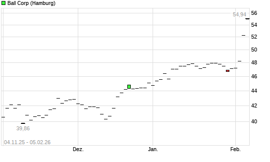 Mit dem Anstieg auf 54,98 EUR hat die Ball-Aktie (ISIN US0584981064) am 04.02.2026 ein neues 12-Monats-Hoch erreicht und damit den Kurs vom 03.02.2026 eingestellt.