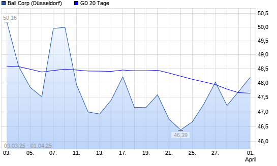Mit dem Rücksetzer auf 47,12 EUR hat die Ball-Aktie am 31.03.2025 die 20-Tage-Linie nach unten gekreuzt.